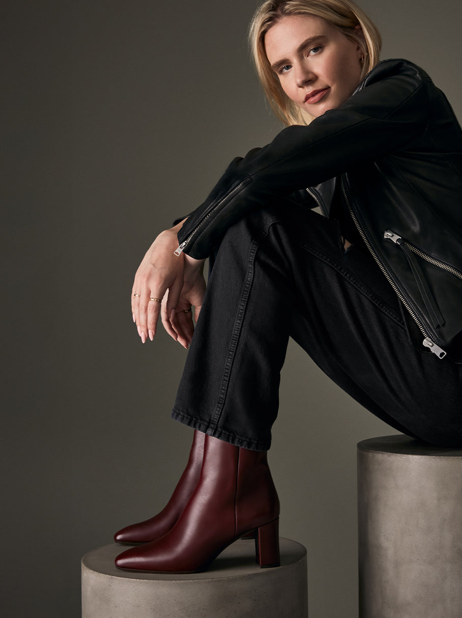 “The block heel is perfect for everyday wear while still looking elevated and polished. The inside feels so plush and comfortable. Also I love the toe + block heel, sleek in the front but with a walkable heel.”