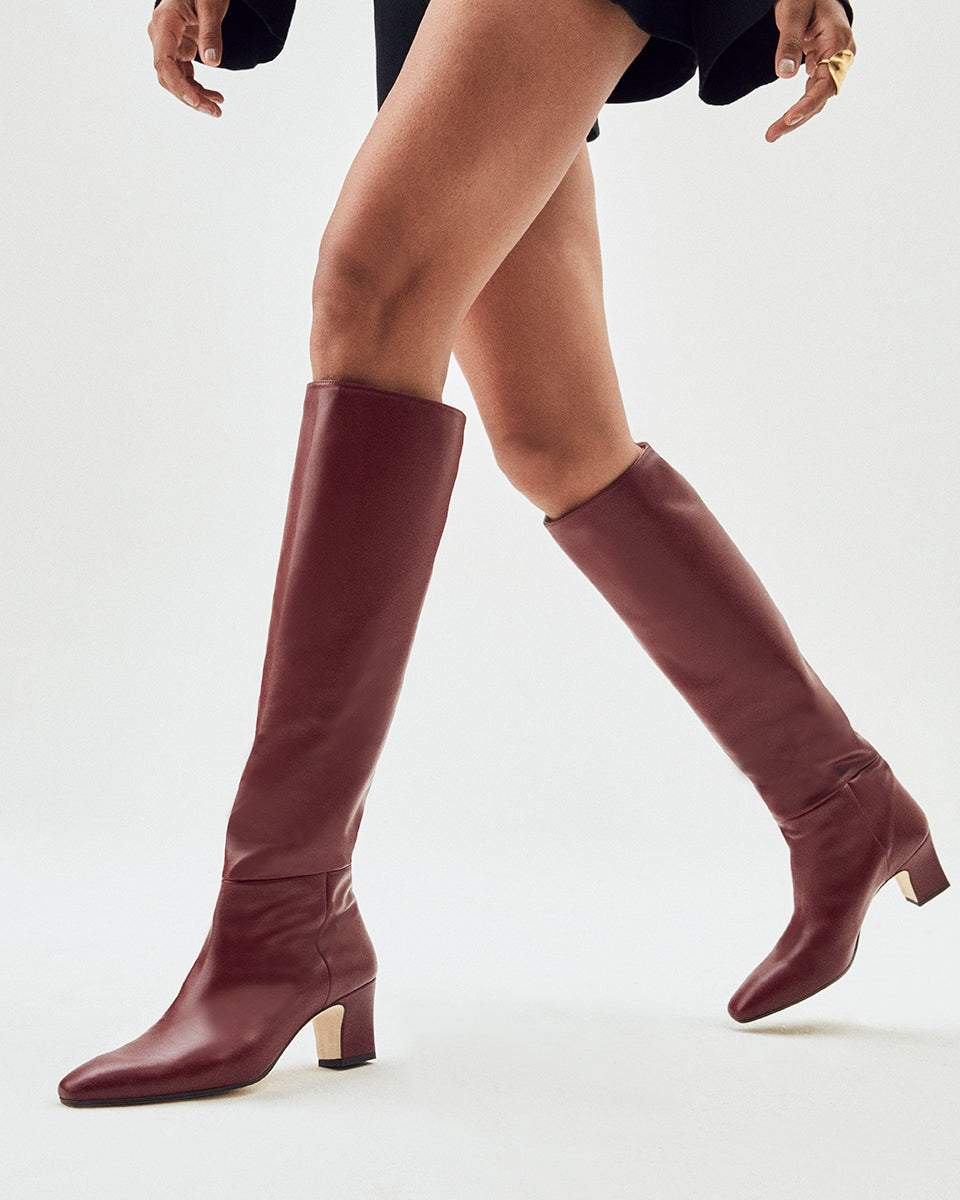 This tall pull‑on boot has a relaxed structure that can be worn high or pushed down for a more slouch look. The elegant snip toe and low sculpted heel are further refined by our signature comfort insole.