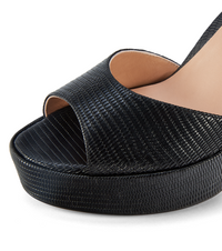 Our platform sandal delivers comfort at an enviable height. The posted back straps keep your foot secure while you enjoy the look of a high heel that feels much lower. Our custom‑designed insole cradles the foot and provides support for hours of wear.
