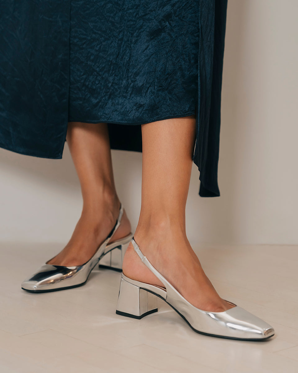 This slingback pump features a softly squared toe and a low block heel, both are further enhanced by our proprietary insole with arch support.