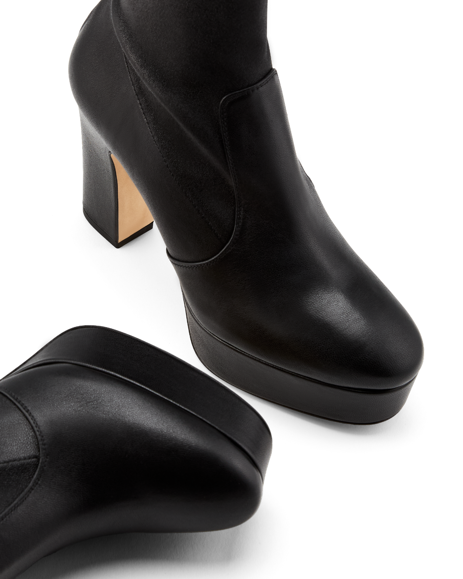 Our platform boot pairs high impact style with extreme comfort. A gently contoured heel is grounded by an almond toe, while the stretch shaft fits like a glove. Every step is cradled by our signature cushioned insole. Luz embraces contradictions: commanding yet utterly refined, architectural yet impossibly comfortable.