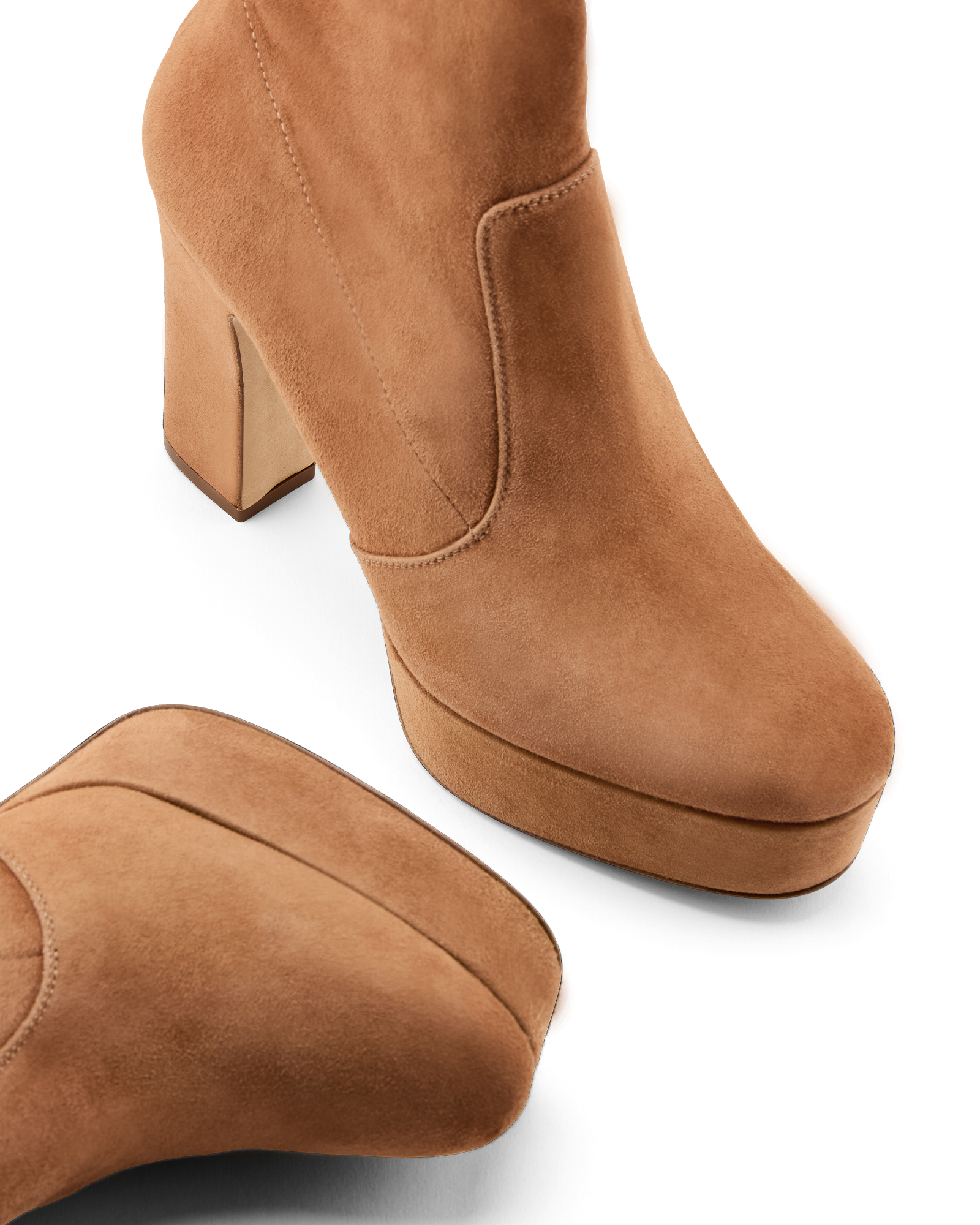 Our platform boot pairs high impact style with extreme comfort. A gently contoured heel is grounded by an almond toe, while the stretch shaft fits like a glove. Every step is cradled by our signature cushioned insole. Luz embraces contradictions: commanding yet utterly refined, architectural yet impossibly comfortable.