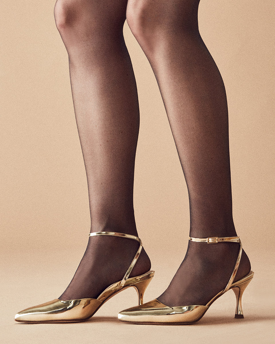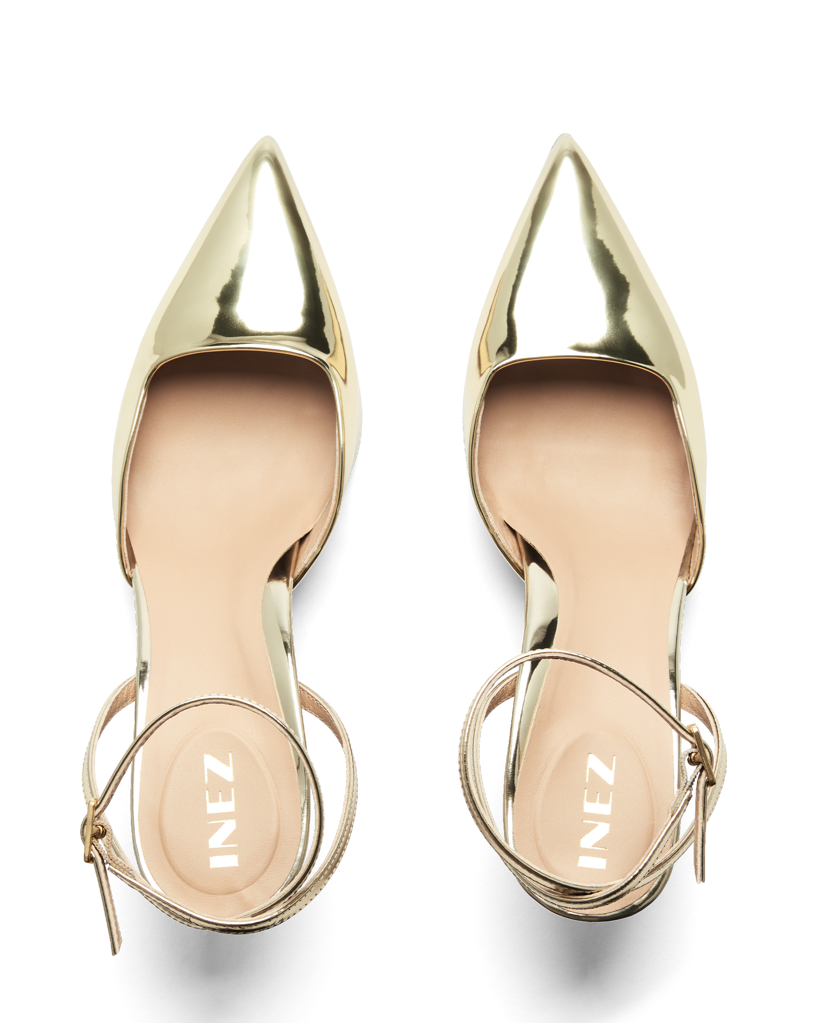 This elegant open back pump features a classic pointed toe and slim ankle wrap. A well‑balanced heel is complemented by our custom designed insole with arch support.