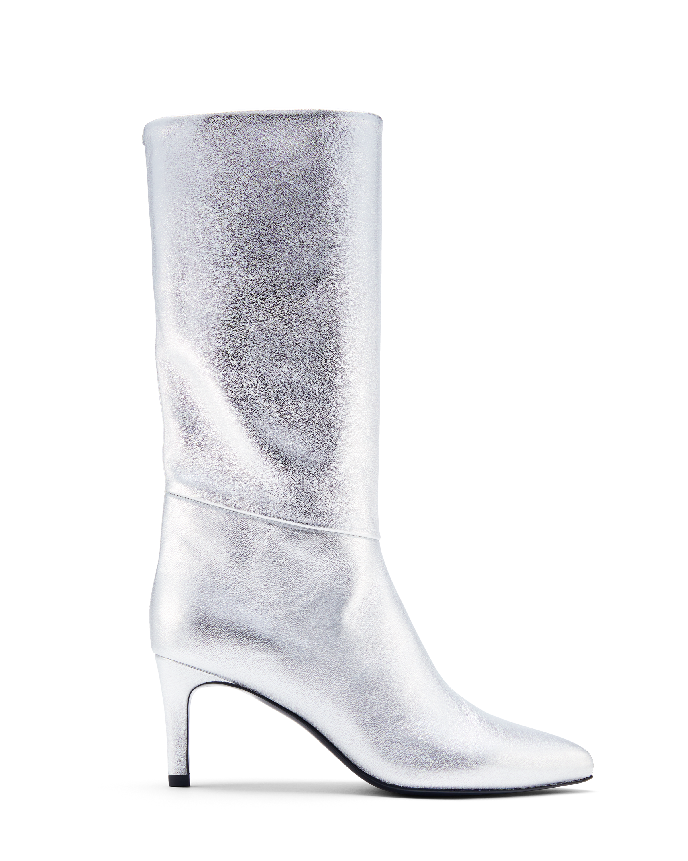 Vintage inspired tube shaft boot that sits below the calf. Features a pointed toe and an elegant mid‑heel for a uniquely sophisticated look.