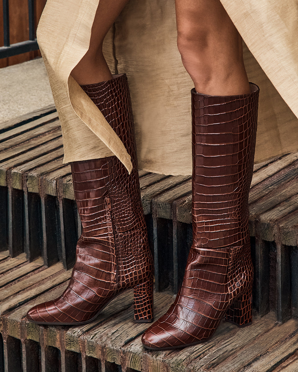 This 70s inspired knee high boot with a softly squared toe features a partial side zip for easy entry. A plush proprietary insole cushions your foot.