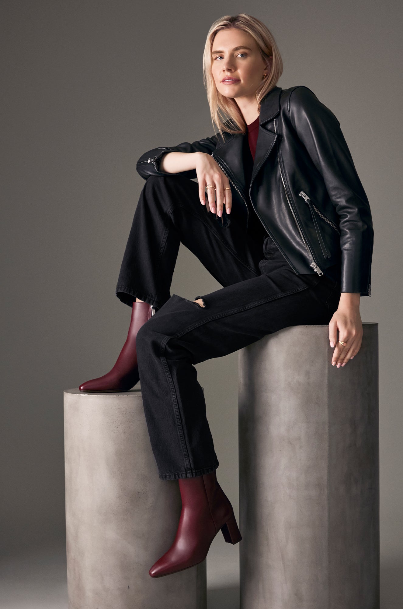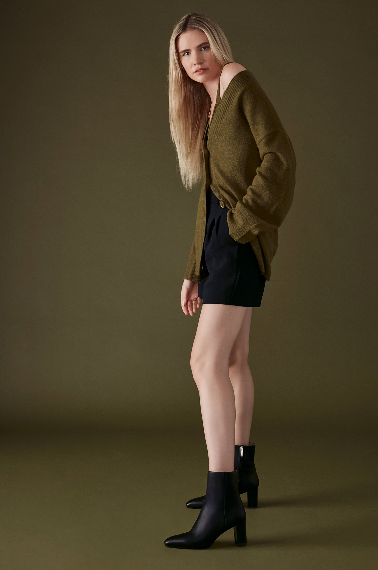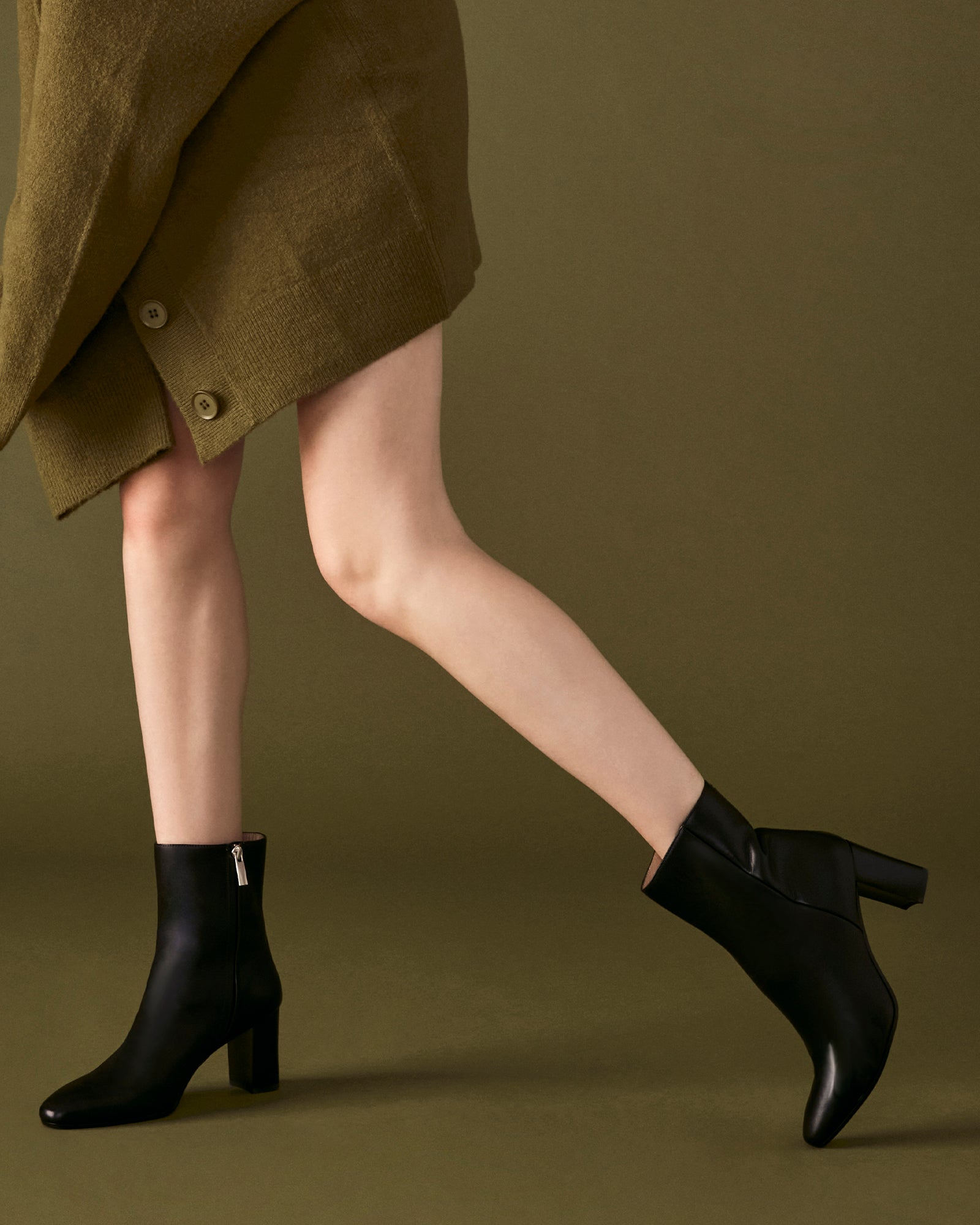 A mid‑heel bootie with a tapered, slim look. The "snip" toe provides a generous fit in the toe box, while a plush proprietary insole cushions your foot.