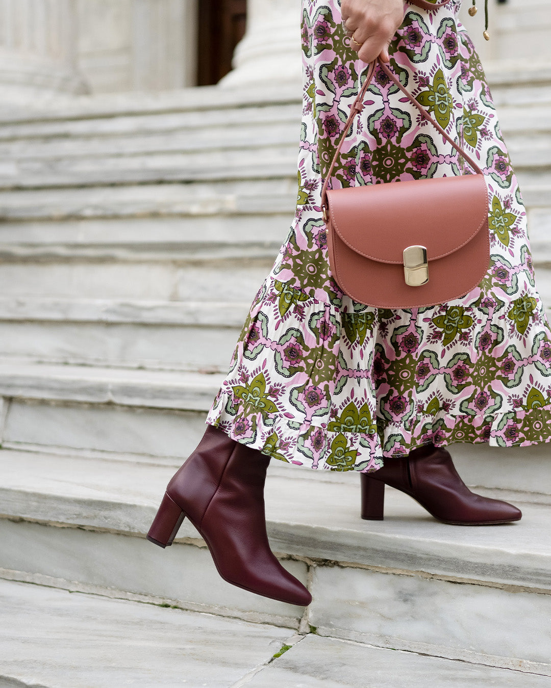 - Covered elongated block heel, 2.8 inches (70mm)