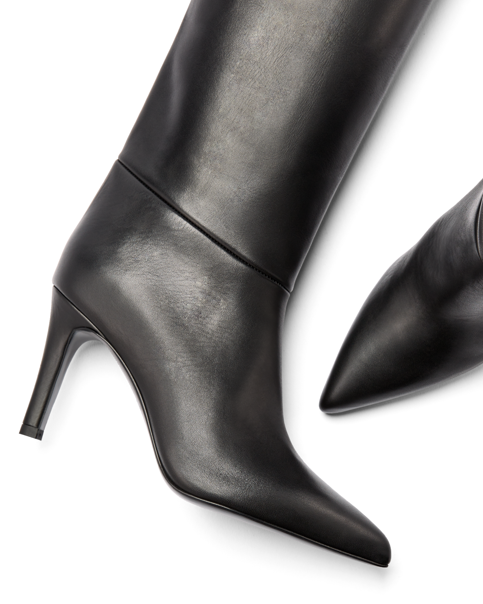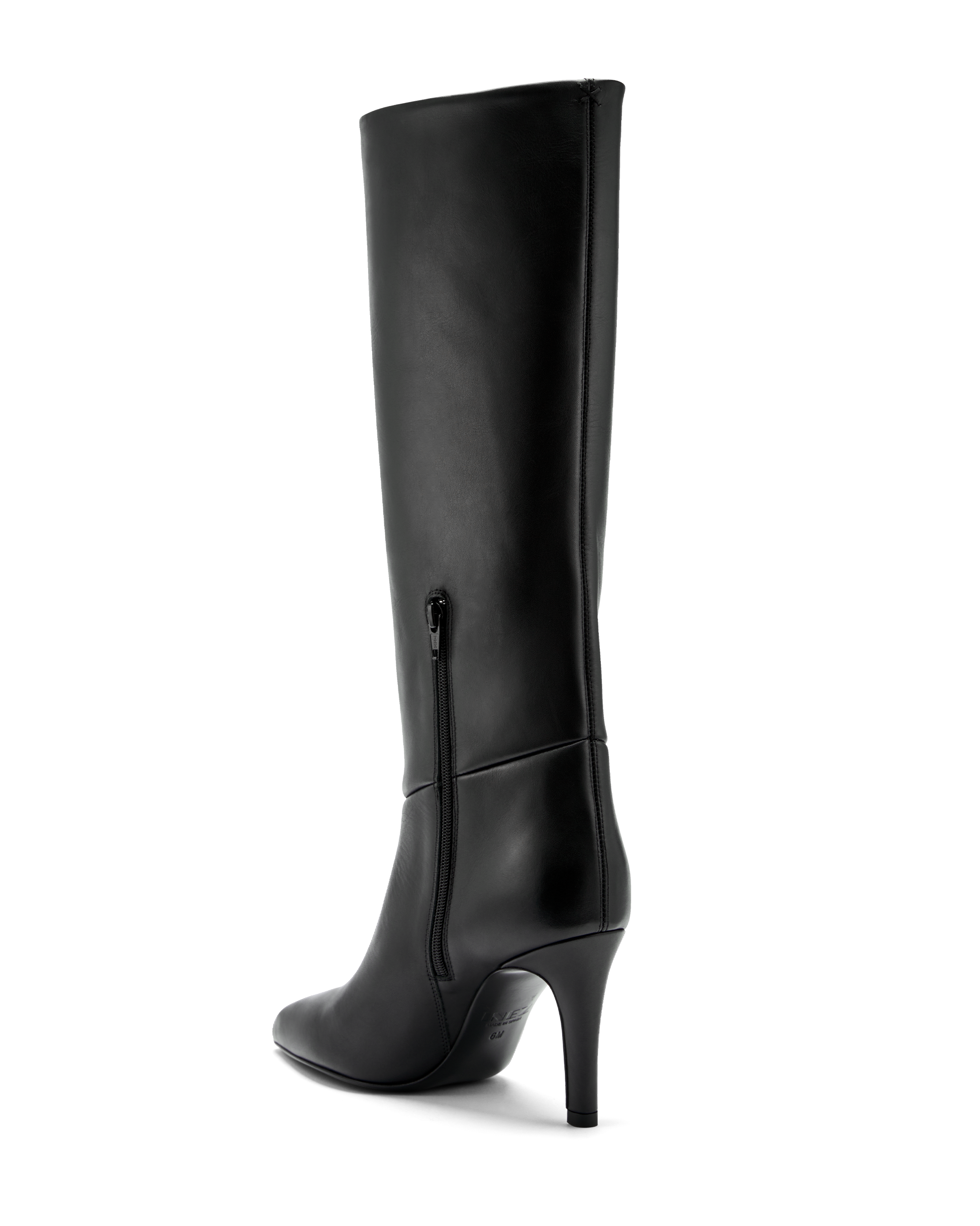 This structured knee high boot with a classic pointed toe and stiletto heel features a partial side zip for easy entry. A plush proprietary insole with arch support cradles and cushions your foot.