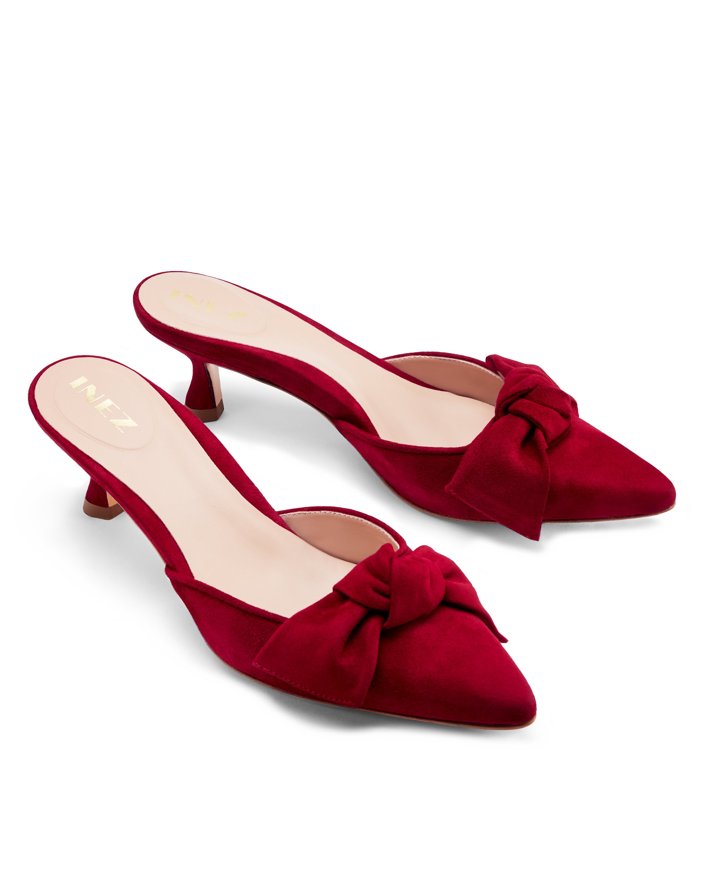 Timeless glamour and comfort collide in our first kitten heel. This pointed toe mule is designed for a held‑on fit, while our signature comfortable insole cradles the foot.
