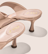 This chic slip‑on sandal features modern asymmetrical lines and a well balanced heel. Yvonne is detailed in soft materials that feel comfortable, yet secure across the instep. Our signature insole with arch support delivers stability and pressure relief.